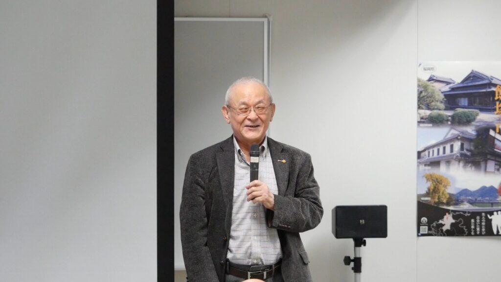 飯塚友情ネットワーク会長の千々和敬明が、ビジコンに参加した学生たちの成長への期待を述べ、開会を宣言しました。