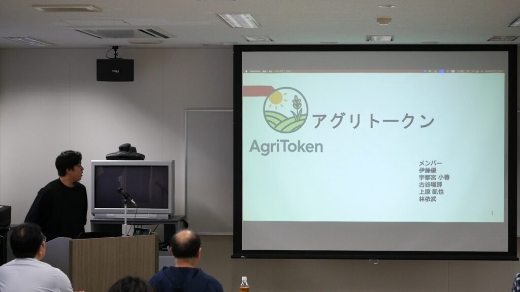 農業の起業支援プラットフォームを提案。コメ価格の高騰をきっかけに着想を得たビジネスモデルで、資金調達から販路開拓までを包括的に支援。資金調達に使用するトークンの仕組みにブロックチェーンを活用しています。
